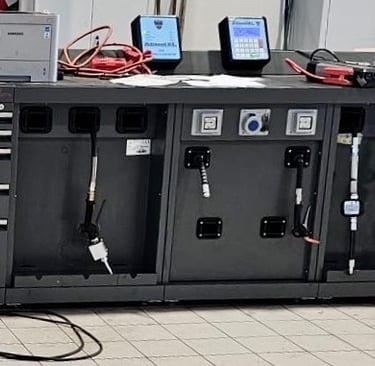 Assetti Ruote, Banchi prova freni e prova velocità, Diagnosi, Misurazione profondità di battistrada, Sistemi di Calibrazione ADAS, Stazioni Ricarica A/C Installazione, manutenzione e supporto tecnico dedicato